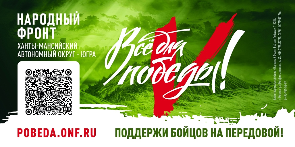 В 2025 году совместно с партнерами, федеральными органами, предпринимателями и неравнодушными жителями Югры передано 22 автомобиля в воинские части на территории проведения специальной военной операции, активистами Народного фронта было совершено более 18 выездов «за ленточку» и передано более 70 тонн гуманитарной помощи для наших бойцов и мирных жителей освобожденных территорий.