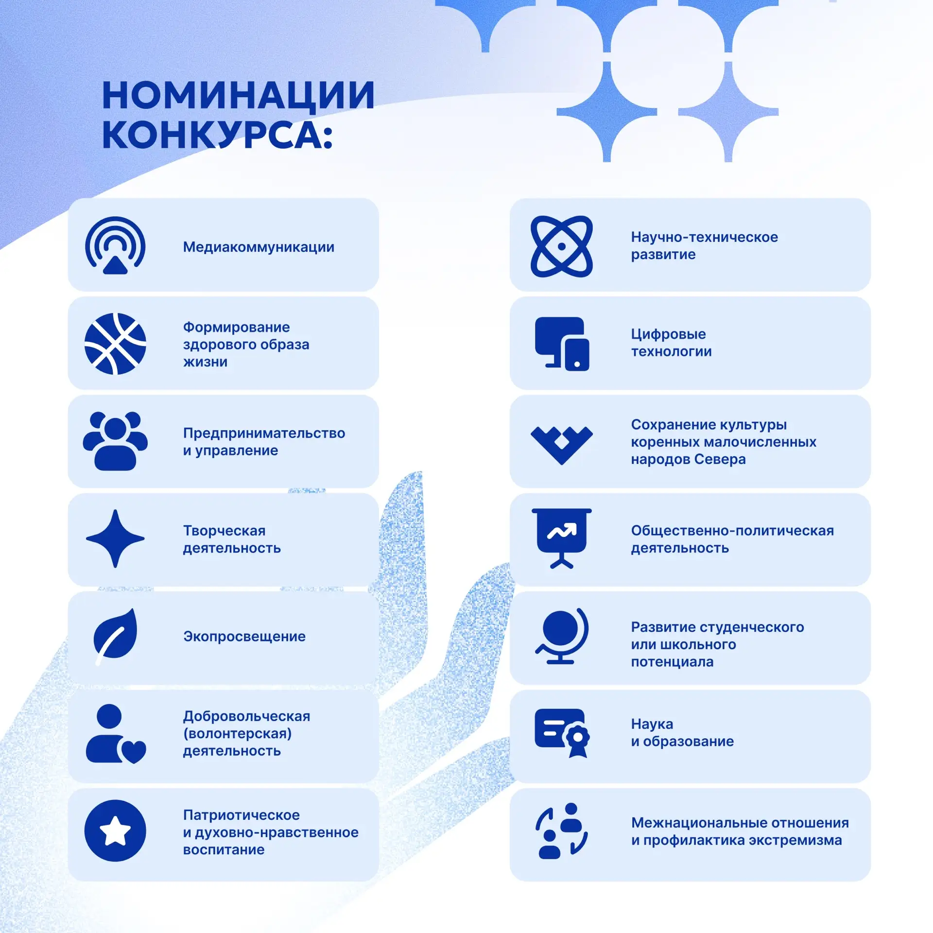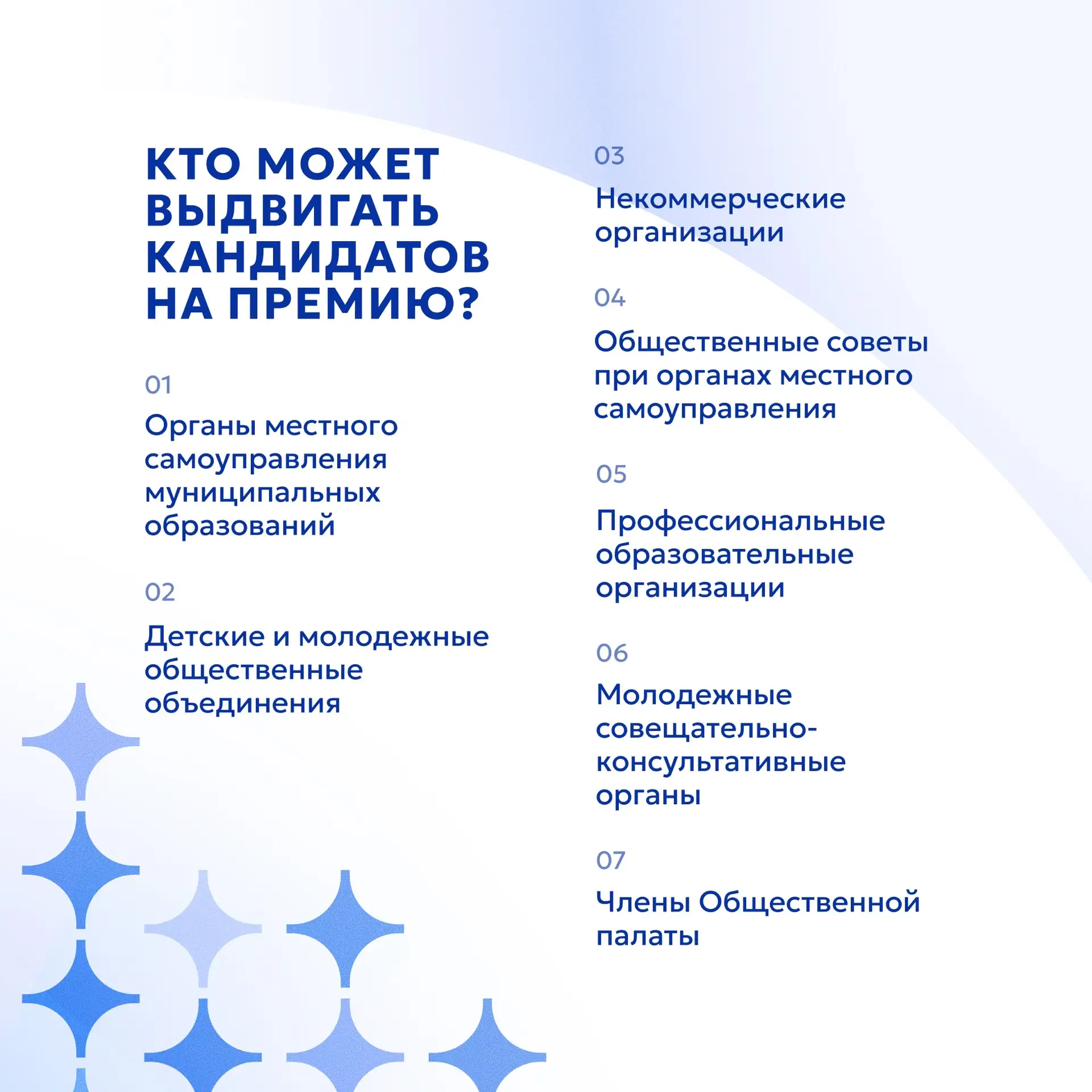 Как выдвигают кандидатов: самостоятельно подать заявку нельзя — твою кандидатуру должна выдвинуть одна из организаций Югры. Не упусти свой шанс вдохновить других молодых югорчан своими успехами!